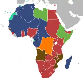 | Countries | 54+2*+5** (*disputed) (**territories) |