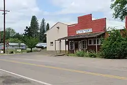 Alpine was so named because it is on the top of one of the foothills of the Central Oregon Coast Range.[2] It is noted that the "situation is not particularly alpine in character".[2] Alpine School operated for several years before there was a settlement in the location, thus the community took its name from the school.[2] In 1908, the Corvallis and Alsea River Railway Company began construction of a line that ended in the settlement of Alpine when funding ran out.[2] The community has burned three times since its heyday in the early 1900s.[3] A post office was established in 1912 and operated until 1976.[2] Alpine now has a Monroe mailing address. Alpine Elementary School closed in 2003.[4] When the Alpine Market closed in 2004, the Alpine Tavern (built in 1936) started selling groceries.[4] In 2005, a vintage photograph of the tavern was featured in a Miller Beer advertisement, and the market was due to be razed.[4]