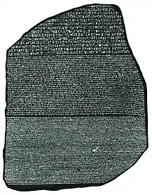 Around the first century AD, the Coptic alphabet started to be used alongside the Demotic script. Coptic is a modified Greek alphabet with the addition of some Demotic signs.[121] Although formal hieroglyphs were used in a ceremonial role until the fourth century, towards the end only a small handful of priests could still read them. As the traditional religious establishments were disbanded, knowledge of hieroglyphic writing was mostly lost. Attempts to decipher them date to the Byzantine[122] and Islamic periods in Egypt,[123] but only in the 1820s, after the discovery of the Rosetta Stone and years of research by Thomas Young and Jean-François Champollion, were hieroglyphs substantially deciphered.[124]
