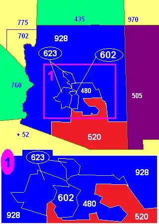 Originally, 520 encompassed the entire state outside the Phoenix metropolitan area, as well as a few outer portions of western and southern Maricopa County. It completely surrounded 602, which was retained by most of the Phoenix area.