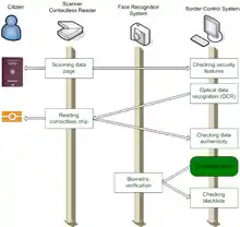 SmartGate is an automated self-service border control system operated by the Australian Border Force and located at immigration checkpoints in arrival halls in eight Australian international airports. SmartGates allow Australian ePassport holders and ePassport holders of a number of other countries to clear immigration controls more rapidly, and to enhance travel security by performing passport control checks electronically.[5] SmartGate uses facial recognition technology to verify the traveller's identity against the data stored in the chip in their biometric passport, as well as checking against immigration databases.