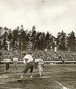 Pesäpallo, a Finnish variation of baseball, was invented by Lauri "Tahko" Pihkala in the 1920s,[93] and after that, it has changed with the times and grown in popularity. Picture of Pesäpallo match in 1958 in Jyväskylä, Finland.