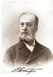 Benjamin Wolf was born on February 16, 1836, in London, England, the first of ten children raised by Edward and Sarah Woolf.[1] In the late 1830s Woolf's family immigrated to America[2] where his father, a former orchestra conductor at London's Pavilion Theatre, would lead orchestras in Mobile, Alabama; New Orleans, Louisiana; St. Louis, Missouri; and Philadelphia, Pennsylvania. By 1841 Woolf's family had settled in New York, where his father would become a noted orchestra leader, artist, novelist and humorist.[3] Woolf was trained on the violin by his father and received his early practical experience performing in theater orchestras.[4]