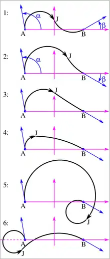 - the total rotation (turning angle) of the curve is exactly (not , which is the rotation for other biarcs);