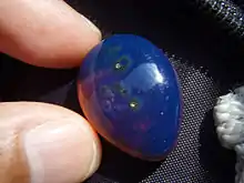 Blue amber is a rare variety of amber resin that exhibits a blue coloration. Blue amber has been found only in the Dominican Republic—especially in the amber mines around the city of Santiago and, less commonly, in the eastern half of the country. In the modern age, it was discovered at about the same time as Dominican amber.[1][2][3]