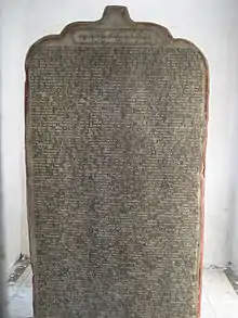 Goddess Saraswati image dated 132 AD excavated from Kankali tila depicts her holding a manuscript in her left hand represented as a bound and tied palm leaf or birch bark manuscript. In India a bounded manuscript made of birch bark or palm leaf existed side by side since antiquity.[28] The text in palm leaf manuscripts was inscribed with a knife pen on rectangular cut and cured palm leaf sheets; colourings were then applied to the surface and wiped off, leaving the ink in the incised grooves. Each sheet typically had a hole through which a string could pass, and with these the sheets were tied together with a string to bind like a book.