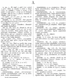 The word book comes from Old English bōc, which in turn comes from the Germanic root *bōk-, cognate to 'beech'.[4] In Slavic languages like Russian, Bulgarian, Macedonian буква bukva—'letter' is cognate with 'beech'. In Russian, Serbian and Macedonian, the word букварь (bukvar') or буквар (bukvar) refers to a primary school textbook that helps young children master the techniques of reading and writing. It is thus conjectured that the earliest Indo-European writings may have been carved on beech wood.[5] The Latin word codex, meaning a book in the modern sense (bound and with separate leaves), originally meant 'block of wood'.