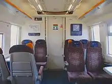 In May 2015, unit 375301 was moved from Ramsgate Depot to Derby Litchurch Lane Works for a full refurbishment. On 16 May 2015, it was returned to the Kent depot wearing a new livery, similar to, but not based on the 'Highspeed' livery carried by the high speed Class 395 EMU, with a more vibrant shade of blue on the saloon doors and bolder stripes to highlight First Class and Disabled areas. Internally, the unit has received new carpets and lino flooring, new table top covers and the grab poles, side panels and table legs have been re-powder coated. The existing seat covers have been retained, but were dry cleaned to provide a brighter, cleaner interior. This work will also involve combining the two separate First Class sections on four car units into one section in the end of MOSL coach. It is intended for all class 375 units to receive this refurbishment between 2015 and 2018. The original plan was for the first 50 units (375/3s, 375/6s and 375/7s) to be refurbished at Bombardier in Derby and then the remaining units would be transferred for refurbishment at Bombardier Ilford. This plan did not go ahead and the 375/8s and 375/9s were sent to Derby. On 19 September 2015 the last 375/3 unit no 375310 went to Derby for refurbishment. The following week on 26 September the first 375/6 went to Derby for refurbishment.[4] The final 375 to receive the refurbishment and gain the new blue Southestern livery was 375 920, which was returned to Ramsgate depot on 28 April 2018.