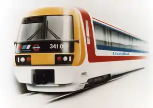 The Class 341 was to be operated on the original version of the Crossrail project. The project for these units never went ahead. A mock-up unit demonstrating the design of the train was built in 1991. One version of Class 341 would have had it forming part of the Networker family.[2] The specifications drawn up for the Class 341 have since been used as a base for laying down specifications for the new Class 345 units built to run on Crossrail. The Class 345 units were introduced in June 2017.[3]