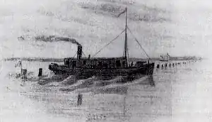In November 1862, Ellis, under command of Lieutenant William B. Cushing, sailed up New River Inlet to capture Jacksonville, North Carolina. The steamer captured two schooners, some arms and mail. On her way down river, Ellis ran aground on November 24, 1862, and could not be re-floated. After dark, her commanding officer moved all the crew except six and all her equipment and supplies except her pivot gun, some ammunition, two tons of coal, and a few small arms to one of the captured schooners. While the schooners slipped down the river to wait, Cushing and five of his men remained to fight it out. Early on the morning of November 25, 1862, the Confederates opened fire on Ellis, and in a short time, Cushing was forced to decide between surrender and a pull of a mile and a half to a waiting schooner. Cushing chose not to surrender, and before leaving his ship, set fire to her in five places, leaving the gun trained on the enemy to let the ship herself carry on the fight when flames would fire the cannon. Cushing and his men reached the schooner and made for the sea, getting the vessel over the bar just in time to escape several companies of cavalry trying to cut off the schooner at the mouth of the inlet. Ellis was blown to pieces by the explosion of her magazine on the morning of November 25, 1862.