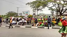 Calabar Carnival festival in Nigeria, also known as "Africa's Biggest Street Party" or the "Pride of Nigeria",[1] is an annual carnival in Cross River State, South-Eastern part of Nigeria.[2] The carnival is held every December and was also declared by the then governor Mr. Donald Duke as an activity to mark Christmas celebration and he said his vision for creating the festival was to make Cross-River a home of tourism and hospitality in Nigeria and Africa. Over the years the quality of this festival keeps growing as it has currently become an international festival and Nigeria number one biggest carnival. It used to be a month stretched event which usually start from the 1st of December until Benedict Ayade reduced it to two weeks when he was elected. During the 2017 carnival Governor Ayade said in his speech that the carnival is to showcase Africa as the richest continent and a blessed place where the young ones should be proud to belong. The carnival has always been a prospect one as different competition takes place with huge cash prices, the carnival has always been a colorful one.[3] [4]