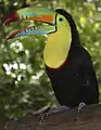 Ecoregions are not only established to protect the forests themselves but also because they are habitats for an incomparably rich and often endemic fauna. Almost half of the bird population of the Talamancan montane forests in Costa Rica and Panama are endemic to this region. Several birds are listed as threatened, most notably the resplendent quetzal (Pharomacrus mocinno), three-wattled bellbird (Procnias tricarunculata), bare-necked umbrellabird (Cephalopterus glabricollis), and black guan (Chamaepetes unicolor). Many of the amphibians are endemic and depend on the existence of forest. The golden toad that once inhabited a small region in the Monteverde Reserve, which is part of the Talamancan montane forests, has not been seen alive since 1989 and is listed as extinct by IUCN. The exact causes for its extinction are unknown. Global warming may have played a role, because the development of that frog is typical for this area may have been compromised. Seven small mammals are endemic to the Costa Rica-Chiriqui highlands within the Talamancan montane forest region. Jaguars, cougars, spider monkeys, as well as tapirs, and anteaters live in the woods of Central America.[30] The Central American red brocket is a brocket deer found in Central America's tropical forest.