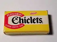 Chiclets is a brand of candy-coated chewing gum owned by Mondelez International. The brand was introduced in 1900 by the American Chicle Company, a company founded by Thomas Adams.[1]