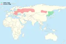 | The range of the Chinese sleeper (native in green; introduced in red)[1] | |