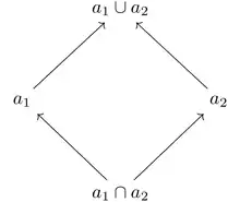 - Binary completeness: for any subset of , if the pairwise union of any of its elements is in , then so is the union of all the elements of :