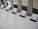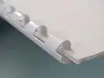 Comb binding (sometimes referred to as "cerlox" or "surelox" binding) is one of many ways to bind pages together into a book. This method uses round plastic spines with 19 rings (for US Letter size) or 21 rings (for A4 size) and a hole puncher that makes rectangular holes. Comb binding is sometimes referred to as plastic comb binding or spiral comb binding.