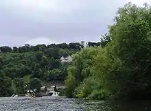 Further upstream towards the Berkshire bank are the Gibraltar Islands which lie in front of Quarry Wood. There are then steep hills overhanging the river at Cookham Dean where the house called "The Mount", where Kenneth Grahame lived as a child is situated. He based much of his book on this part of the Thames which is described as Wind in the Willows country.
