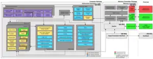 Cray XMT2[3] (also "next-generation XMT"[8] or simply XMT[6]) is a scalable multithreaded shared memory supercomputer by Cray, based on the fourth generation of the Tera MTA architecture.[5] Presented in 2011, it supersedes Cray XMT, which had issues with memory hotspots.[8] It uses Threadstorm4 CPUs inside Cray XT5 blades and increases memory capacity eightfold to 512 TB and memory bandwidth trifold (300 MHz instead 200 MHz) compared to XMT by using twice the memory modules per node and DDR2.[6][8] It introduces the Node Pair Link inter-Threadstorm connect, as well as memory-only nodes, with Threadstorm4 packages having their CPU and HyperTransport 1.x components disabled.[5] The underlying scrambled content-addressable memory model has been inherited from XMT. XMT2 uses 2 additional EMS bits (full/empty and extended) instead of 4 as in XMT.