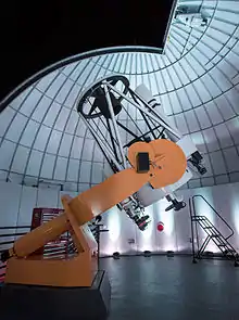 DFM Engineering is an American telescope and optics manufacturer founded in 1979 by Frank Melsheimer in Longmont, Colorado.[1][2] DFM makes medium size Cassegrain telescopes and their associated systems including telescope optics, control systems, and mounts. A range of pre-designed telescopes are made, as are various custom installations. DFM produces its classical Cassegrain design in various apertures from 16 inches (0.4 m) to 50 inches (1.3 m) and larger.[3] The base DFM 16-inch (40 cm) telescope system cost roughly 94 thousand USD in 2005.[4]