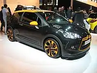 The DS 3, known as the Citroën DS3 until 2016, is a discontinued supermini car, produced by the French manufacturer Citroën from 2009 to 2019 and officially launched in January 2010.[2] This was the first car in the new DS range from Citroën (pronounced déesse, which is French for goddess). Its design was inspired by the concept car Citroën DS Inside.[3]