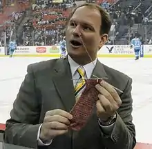 Dan Potash (born March 22, 1970) is a TV reporter for AT&T SportsNet Pittsburgh (formerly FSN Pittsburgh and Root Sports Pittsburgh). He covers both the Pittsburgh Penguins of the NHL and the Pittsburgh Pirates of the MLB. He joined the AT&T SportsNet Pittsburgh team in 2000. Prior to joining AT&T SportsNet Pittsburgh, he worked for three years as weekend sports reporter for WCIV-TV in Charleston, South Carolina. Before that, Dan served as the sports director at WDTV in Bridgeport, West Virginia. Dan started his sportscasting career in Southern California, where he was a production assistant for Prime Sports.[1] Potash is well known for an incident in 2008 when former Penguins player Georges Laraque kissed him during a report. On August 17, 2012, Potash confirmed on the ROOTSPORTSPIT Twitter account that he is now engaged to long-time girlfriend Heidi.[2]