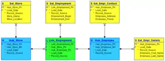 Reference tables are referenced from Satellites, but never bound with physical foreign keys. There is no prescribed structure for reference tables: use what works best in your specific case, ranging from simple lookup tables to small data vaults or even stars. They can be historical or have no history, but it is recommended that you stick to the natural keys and not create surrogate keys in that case.[20] Normally, data vaults have a lot of reference tables, just like any other Data Warehouse.