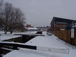 Diglis is a suburb of Worcester, England. It is located around half a mile south of the city centre on the banks of the River Severn. The Worcester and Birmingham Canal starts in Diglis where it is connected to the Severn. Diglis Lock is a wide-beam lock allowing river craft access to Diglis Basin.[1] Diglis Island[2] is a sliver of land in the middle of the River Severn opposite the opening of The Worcester and Birmingham Canal, which has featured art displays and tours.[3] Diglis House Hotel sits on the banks of the River Severn to the south of Worcester Cathedral.[4] The area immediately next to the river is often affected by flooding such as in autumn 2000 and summer 2007. New apartments have been built in Diglis and there has been some investment in the waterfront areas which are popular with tourists.[5] Diglis Bridge, a pedestrian and cycle bridge across the Severn, opened in 2010 linking Diglis and St Peter's with Lower Wick.[6] In 2021, Princess Anne opened a fish viewing gallery at the Severn Bridge.[7]