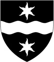 Arms of Drake Baronets of Buckland Abbey and Nutwell: Sable, a fess wavy between two pole-stars Arctic and Antarctic argent. These were the arms granted to the 1st Baronet's uncle, Admiral Sir Francis Drake (d.1596).[1] As visible at Nutwell Court and in its parish church of Woodbury