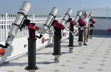Fleet of portable telescopes on the rooftop veranda of ERAU's COAS building.