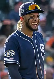 Fernando Gabriel Tatís Medina Jr. (born January 2, 1999), nicknamed "El Niño",[1] is a Dominican professional baseball shortstop and outfielder who plays for the San Diego Padres of Major League Baseball (MLB). He is the son of former MLB player Fernando Tatís Sr. Tatís Jr. stands 6 feet 3 inches (191 cm) tall and weighs 217 pounds (98 kg). He made his MLB debut in 2019, won the Silver Slugger Award in 2020, and was named an All-Star in 2021.