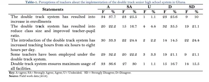 - Mensah, D. (2019). Teachers’ Perspective on Implementation of the Double Track Senior High School System in Ghana. International Journal Of Emerging Trends In Social Sciences, 5(2), 47-56. pp. 47-56. doi: 10.20448/2001.52.47.56