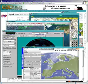 People backing up the service come from a variety of businesses, institutions and different countries, but mostly from Slovenia. All the information are somehow connected to the Earth and Space (geocoded).[8] The Internet applications, which are running mostly on client side, enable the viewing of maps, aerial photography and satellite imagery. They reveal the Earth from above and the Space from below. Many specific layers of different content can be pasted over those maps and images. Time dependent information is calculated on-line.