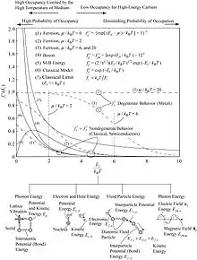 Photon is the quanta of electromagnetic (EM) radiation and energy carrier for radiation heat transfer. The EM wave is governed by the classical Maxwell equations, and the quantization of EM wave is used for phenomena such as the blackbody radiation (in particular to explain the ultraviolet catastrophe). The quanta EM wave (photon) energy of angular frequency ωph is Eph = ħωph, and follows the Bose–Einstein distribution function (fph). The photon Hamiltonian for the quantized radiation field (second quantization) is[37][38]