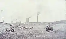 In 1848 the first timber crib dam, about 1,000 feet (300 m) in length, was constructed across the Connecticut River to divert water into the canals. It failed within hours,[4] and was replaced by a second timber dam, which in turn was replaced in 1900 by a granite-faced dam about 150 feet (46 m) downstream from its predecessor. The early canals were dug by men with picks and shovels, together with horse-drawn teams. Canal construction continued on and off until 1892.
