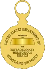 The Homeland Security Distinguished Service Medal is a military decoration of the Department of Homeland Security, which is presented to United States Armed Forces servicemembers for exceptionally meritorious service. The current version of the medal was established in February 2003, retroactive to March 1, 2002.[2]