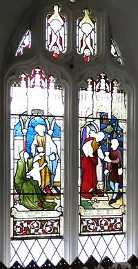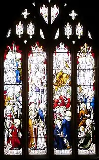 William Thomas Hodgetts (Chambers) Hodgetts (d.1867) was in 1867 a member of the British Ornithologists' Union[56] and died at Hudscott in 1867.[57] His daughter Mary Mabel Chambers Hodgetts (who in 1871 had been an orphan and Ward of Chancery) in 1893 donated in his memory the west window of Chittlehampton Church which depicts Our Lord in Glory.[57] A brass plaque in the church is inscribed as follows: "To the glory of God and in devoted memory of William Thomas Hodgetts Hodgetts only son of William Wylly Chambers, Captain RN, who died at Hudscott in this parish December 14th 1867. This window is dedicated by his only child Mary Mabel Chambers Hodgetts July 2nd 1893". He was baptised William Thomas Hodgetts Chambers, the son of Royal Navy Captain William Wylley Chambers by his wife Eliza Anne Hodgetts, daughter and sole heiress of Thomas Webb Hodgetts (d.1855) of Dudley and Elm Lodge, Hagley, Worcestershire. In compliance with the will of his maternal grandfather Thomas Webb Hodgetts, by royal licence dated 4 March 1867 he assumed the surname of Hodgetts in lieu of Chambers, and quartered the arms of Hodgetts with Chambers.[58] In 1867 William Hodgetts also resided at Instow, Devon.[59]