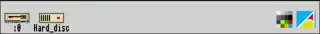The bar is fixed in height and located at the bottom of the screen. It takes up the full width of the screen, and a single row of icons is displayed within. Icons are either justified to the left or the right edge of the screen, at the control of the owning program. According to Acorn's official RISC OS Style Guide, a program should place its icons to the left hand side of the icon bar if they relate to physical devices or resources such as filing systems. These will have an item of text underneath them identifying the device or resource. All other icons should be placed on the right of the bar.[3][4] If too many icons are present to be displayed at once then the icon bar will extend horizontally and become wider than the screen; in order to access the non-visible icons the user must scroll the bar by hovering the mouse pointer at the appropriate edge of the screen.