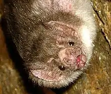 Vampire bats have developed a specialized system using infrared-sensitive receptors on their nose-leaf to prey on homeothermic (warm-blooded) vertebrates.[1] Trigeminal nerve fibers that innervate these IR-sensitive receptors may be involved in detection of infrared thermal radiation emitted by their prey. This may aid bats in locating blood-rich areas on their prey.[1][2] In addition, neuroanatomical and molecular research has suggested possible similarities of IR-sensing mechanisms between vampire bats and IR-sensitive snakes.[2][3][4][5] Infrared sensing in vampire bats has not yet been hypothesized to be image forming, as it was for IR-sensitive snakes.[6] While the literature on IR-sensing in vampire bats is thin, progress continues to be made in this field to identify how vampire bats can sense and use infrared thermal radiation.