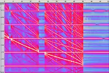 Injection (aka frequency) pulling occurs when an interfering frequency source disturbs an oscillator but is unable to injection lock it. The frequency of the oscillator is pulled towards the frequency source as can be seen in the spectrogram. The failure to lock may be due to insufficient coupling, or because the injection source frequency lies outside the locking window (also known as the lock range) of the oscillator. Injection pulling fundamentally corrupts the inherent periodicity of an oscillator.
