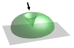To track celestial objects as they move across the sky, these systems usually rotate on two axes. Often, a tilting mechanism (elevation) is mounted upon a panning base (azimuth). To cover the complete hemisphere of visible sky, a telescope gimbal can have a 360-degree azimuth range and a 0- to 90-degree elevation range. To visualize this shape, imagine drawing a quarter circle spanning from the horizon to directly above you and revolving it around the vertical axis. If, on the other hand, the gimbal has a range from 0 to slightly less than 90 degrees elevation, the telescope is unable to see a region of sky.