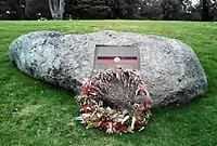 The Kings Domain Resting Place is a memorial in Melbourne, Victoria, Australia, located in Kings Domain on Linlithgow Avenue.[1][2] The site is the resting place for the repatriated and reburied remains of 38 Aboriginal People of Victoria, marked by a memorial plaque embedded in a large granite boulder.[3][2][1] It is an Aboriginal heritage site protected by the Melbourne Planning Scheme.[4] The whole area of Melbourne's Domain Parkland and Memorial Precinct, including the site itself was added to the Australian National Heritage List on 11 February 2018.[5]