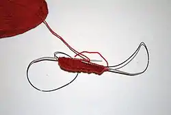 Numerous techniques have been devised for the production of narrow tubular knitting on circular needles. One common method is to use two needles in place of the four or five double-pointed needles traditionally used, while a newer technique is to use one circular needle that is significantly longer than the circumference of the item being knitted. This technique is known as Magic Loop and has recently become a popular method of producing tubular knitting, as only one needle is required.[1]