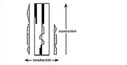 The symbols are placed on a vertical staff, the horizontal dimension of the staff represents the symmetry of the body, and the vertical dimension represents time passing by.