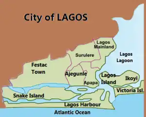 Lagos shown within the State of Lagos