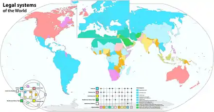 Legal systems vary between countries, with their differences analysed in comparative law. In civil law jurisdictions, a legislature or other central body codifies and consolidates the law. In common law systems, judges make binding case law through precedent,[11] although on occasion this may be overturned by a higher court or the legislature.[12] Historically, religious law influenced secular matters,[13] and is still used in some religious communities.[14][15] Sharia law based on Islamic principles is used as the primary legal system in several countries, including Iran and Saudi Arabia.[16][17]
