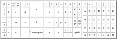 Linotype machines for the English language assumed the letter order, from most to least common, to be etaoin shrdlu cmfwyp vbgkjq xz based on the experience and custom of manual compositors. The equivalent for the French language was elaoin sdrétu cmfhyp vbgwqj xz.