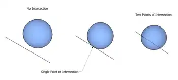 Methods for distinguishing these cases, and determining the coordinates for the points in the latter cases, are useful in a number of circumstances. For example, it is a common calculation to perform during ray tracing.[1]