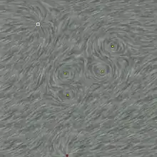 In scientific visualization, line integral convolution (LIC) is a technique proposed by Brian Cabral and Leith Leedom to visualize a vector field, such as fluid motion.[1] Compared to other integration-based techniques that compute field lines of the input vector field, LIC has the advantage that all structural features of the vector field are displayed, without the need to adapt the start and end points of field lines to the specific vector field. LIC is a method from the texture advection family.