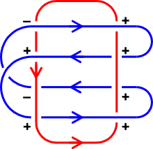 where n1, n2, n3, n4 represent the number of crossings of each of the four types. The two sums and are always equal,[2] which leads to the following alternative formula