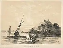 The castle sits on a much older Iron Age promontory fort, proving Llansteffan has been inhabited for several millennia.[1] The hill where the castle stands commands the River Tywi estuary. The hill would have been stripped of trees so that foot soldiers were vulnerable to attack by archers. The original earthworks can still be seen and were used as part of the modern castle's defence system—the castle proper rests within the earthwork rings.